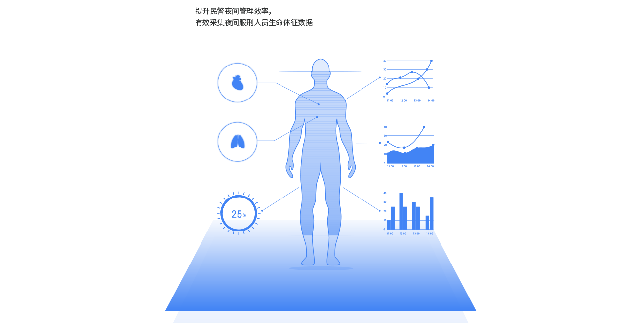 生命體征采集管理解決方案系統(tǒng)概述,基于神州科技物聯網架構下而延伸出的生命體征采集,主要采集學員夜間心率,呼吸率,離床等相關數據,極大提高了夜間管理的效率,減輕一線民警的負擔。