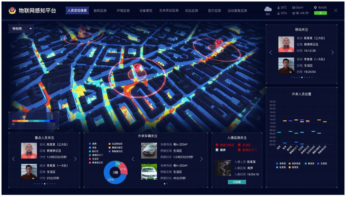 物聯感知平臺:現代化的戒毒管理,除了必須具有一支訓練有素的管理員隊伍外,一些安全、先進、智能化的管理設備有著不可替代的重要作用,事實證明,人才、技術的有機結合,方能提高現代化的戒毒綜合管理水平。